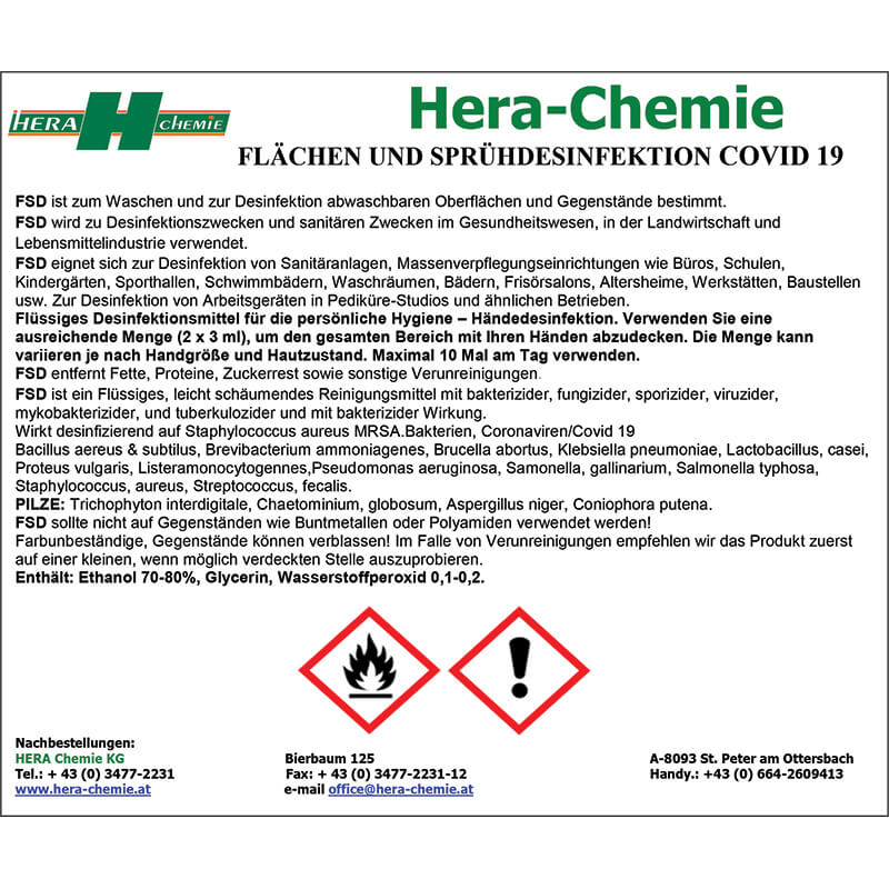 FSD ist zum Waschen und zur Desinfektion abwaschbaren Oberflächen und Gegenstände bestimmt.